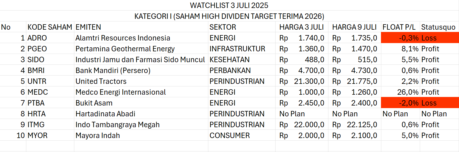 HASIL WATCHLIST SAHAM HIGHDIVIDEN PERIODE I JULI 2025